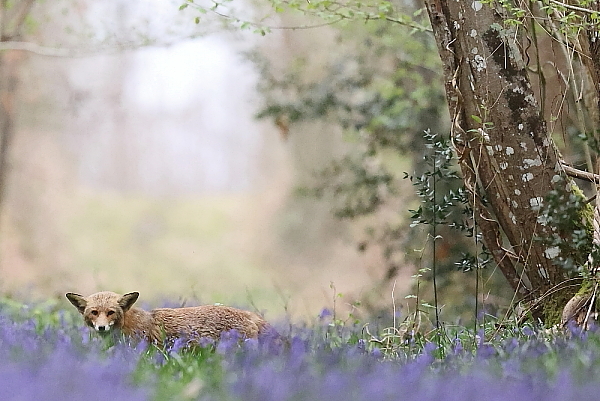Le printemps est bien là ! Avec de l’avance, les sous bois fleurissent. Des tapis d’anémones Sylvie et de jacinthes des bois apportent une touche de renouveau dans les sous bois encore endormis par l’hiver.  Comme chaque année, je me rends sur cette allée forestière tapissée de jacinthes des bois; une ambiance mauve du plus bel effet. Reste à attendre la venue d’un hôte dans cette ambiance magique. Ce matin c’est maitre renard qui est passé me rendre visite. Encore trois semaines pour profiter de cette ambiance féerique.