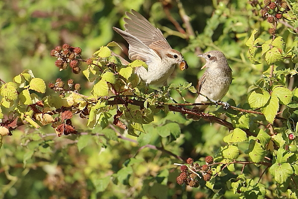 En ce début d’été, la reproduction est déjà bien avancée. Les jeunes ont désormais quitté le nid après 15 jours mais les parents continueront à les nourrir pendant près de trois semaines. Les jeunes ne cessent de quémander de la nourriture, essentiellement des insectes types Orhtoptères (criquet), Lépidoptères (papillons), Hyménoptères (Bourdons et abeilles) mais parfois aussi de petits reptiles.